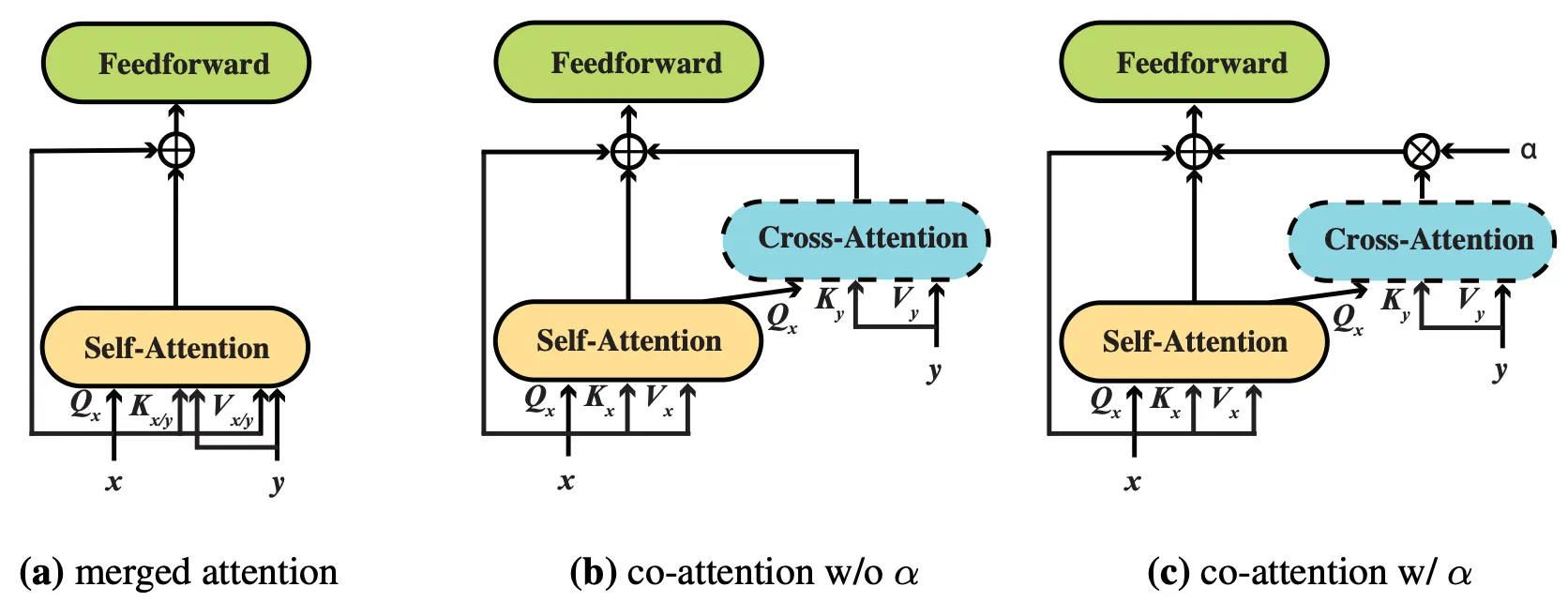 Merged Attention과 Co-attention이 없어도 비슷한 성능에 도달하는 것 알 수 있음.