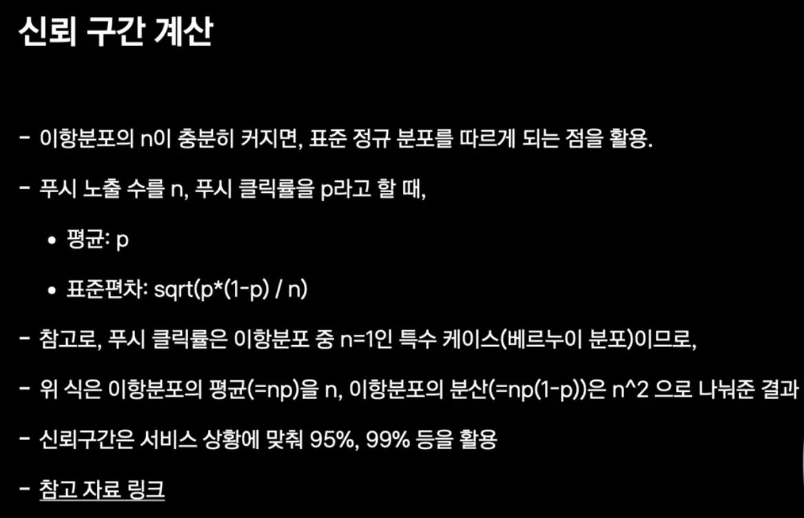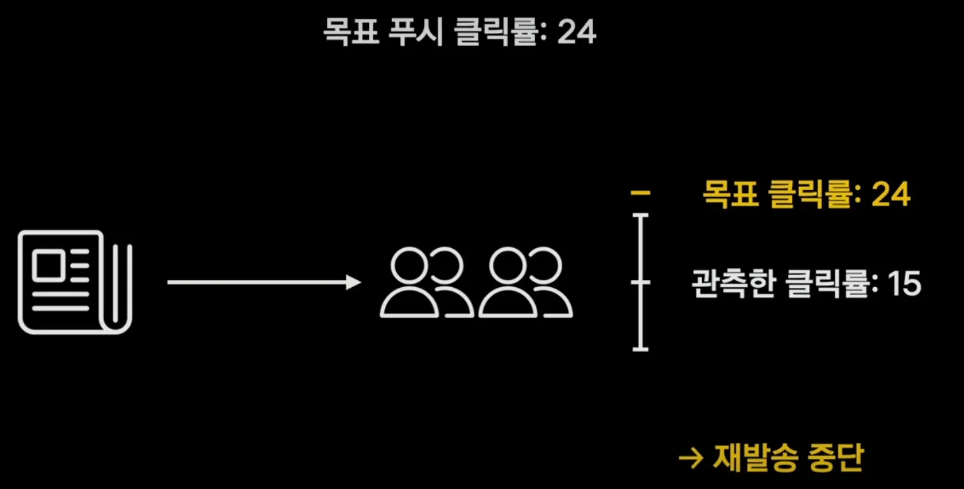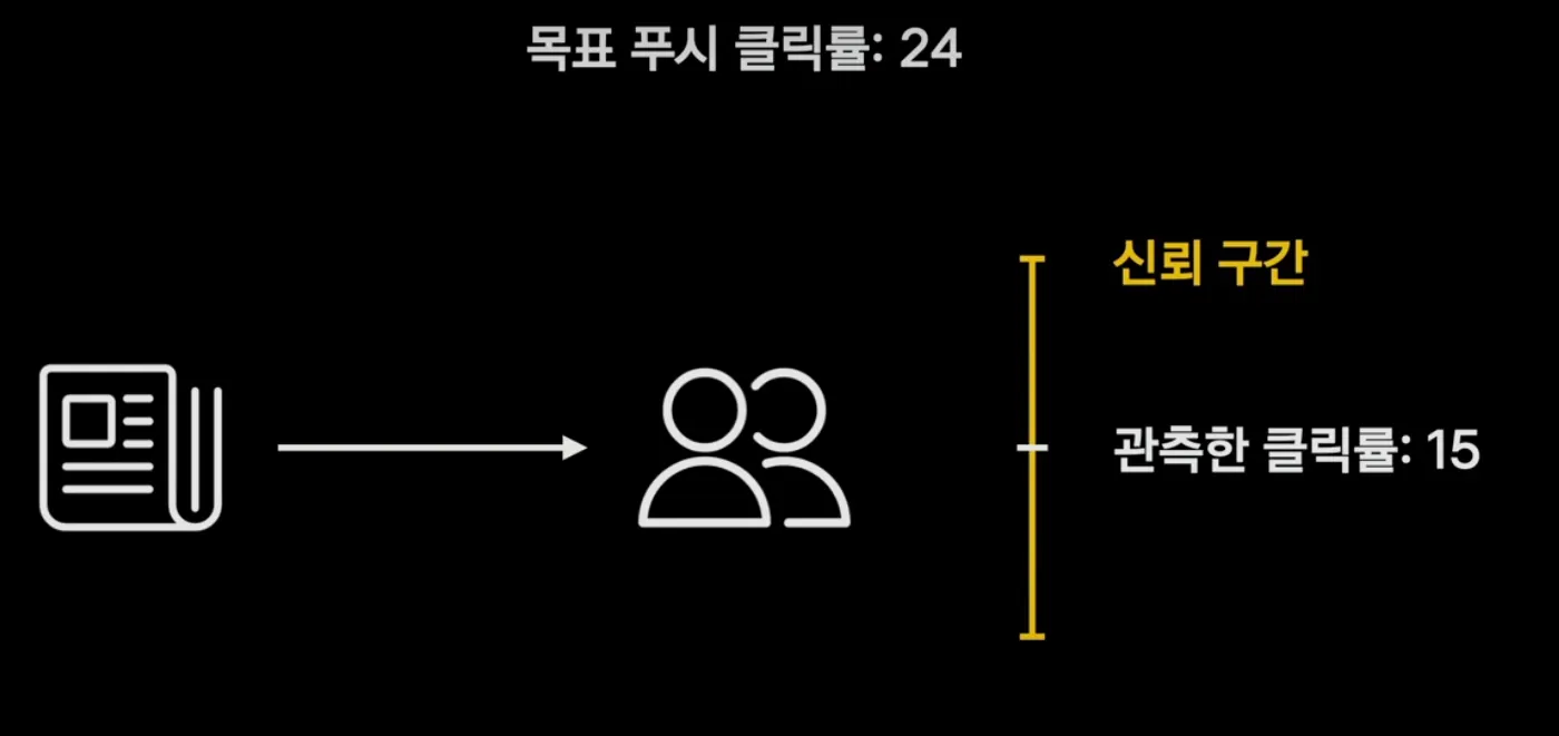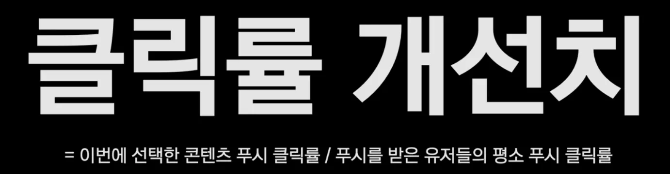 평소 푸시 클릭률이 10인 유저 그룹을 대상으로 CTR 개선치 2.4배를 세우면 CTR이 24가 되어야 좋다.