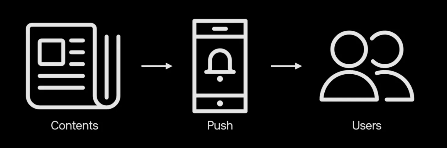 푸시라는 매개체를 통해 콘텐츠를 유저에게 보내는 상황이다.