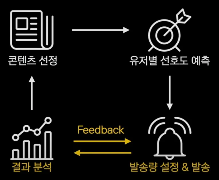 푸시는 하나의 수단에 불과하다. 비지니스 문제를 풀기 위해 ML을 사용하였고 설계한 시스템을 다음앱에 적용해 본 스토리에 대해 말하고자 한다.