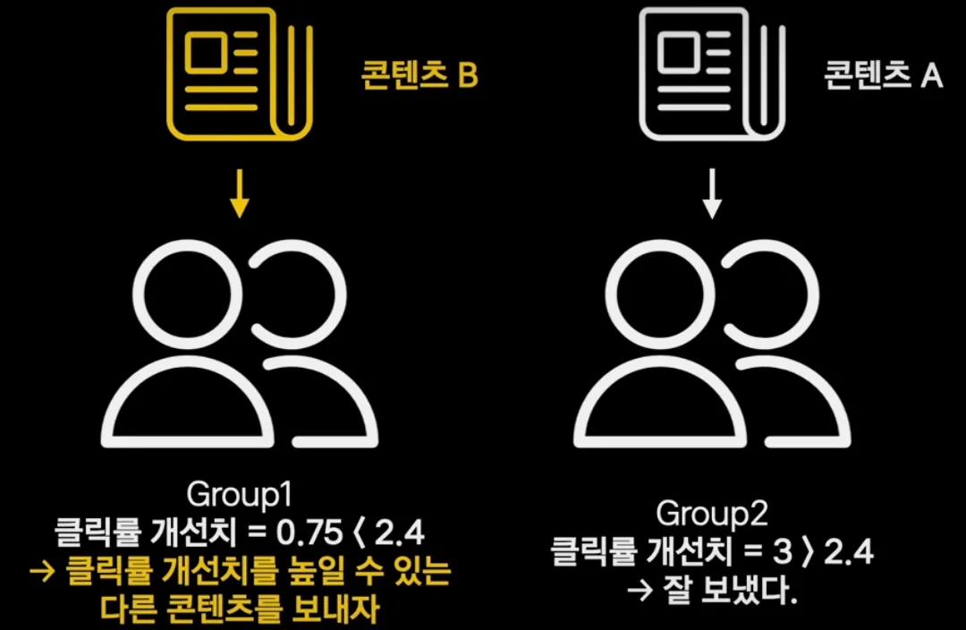 정리하자면 전략은 개인화 전략이고, 목표치는 클릭률 개선치 2.4배 달성이다. (개인별로 받는 콘텐츠 푸시가 비록 일반 콘텐츠지만 개인에게는 빅이슈 만큼의 임팩트를 주는 콘텐츠로 선별하여 제공하는 것이 목표이다.)