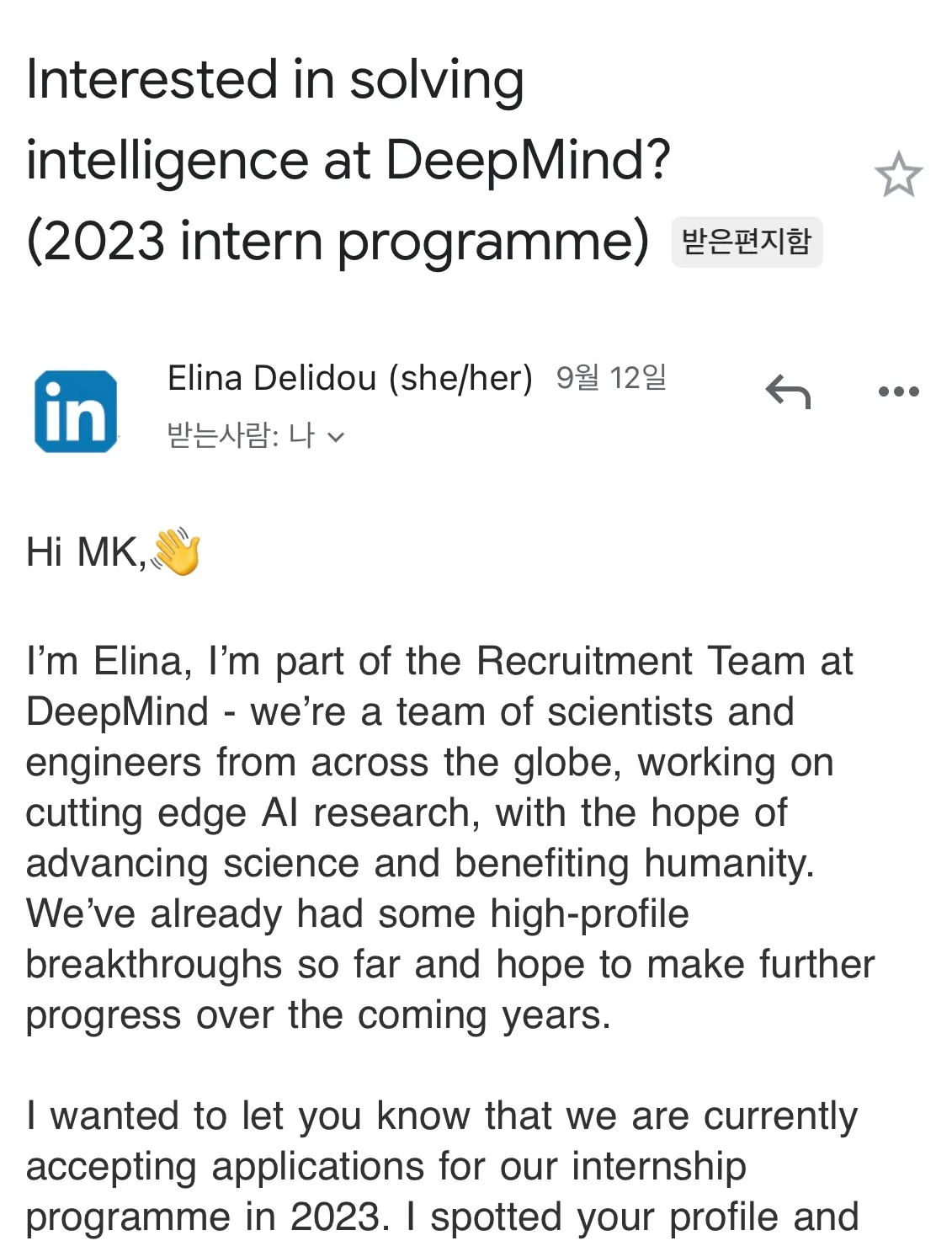 글또를 할 때마다 신기한 경험들을 조금씩 해왔는데 이번에는 무려 알파고를 만든 구글 딥마인드의 채용담당자로부터 인턴 프로그램 연락을 받았었다.